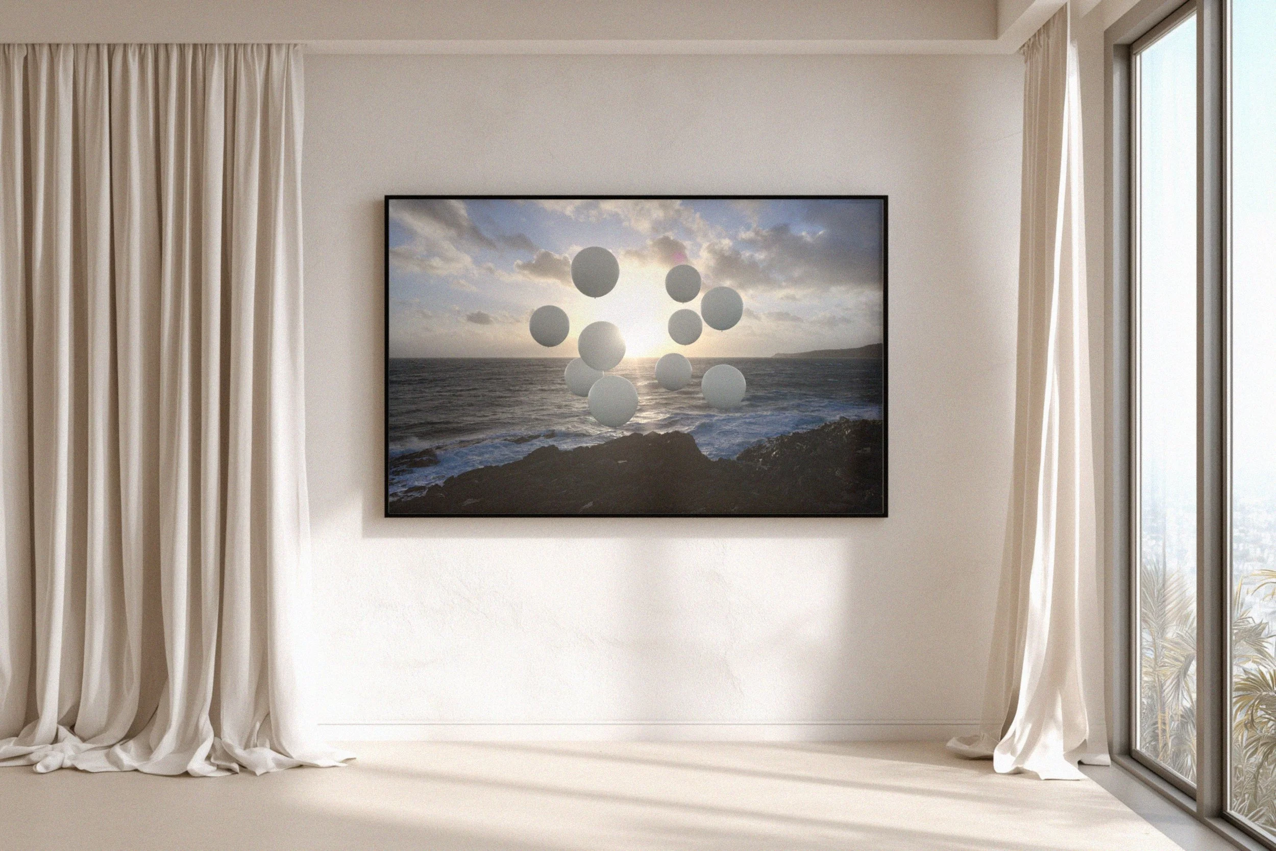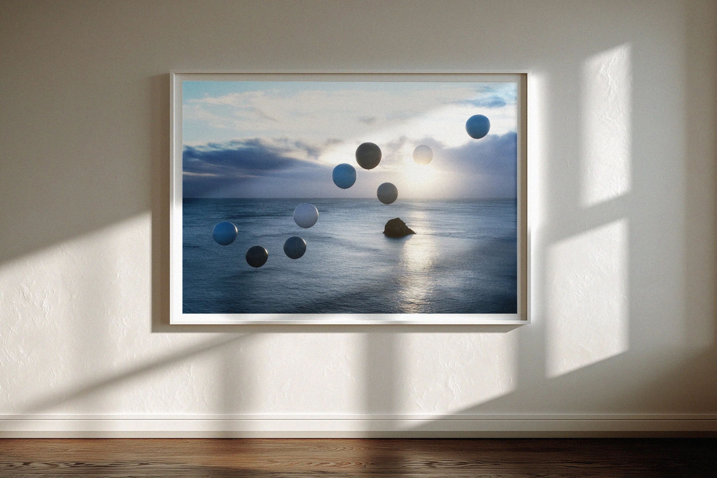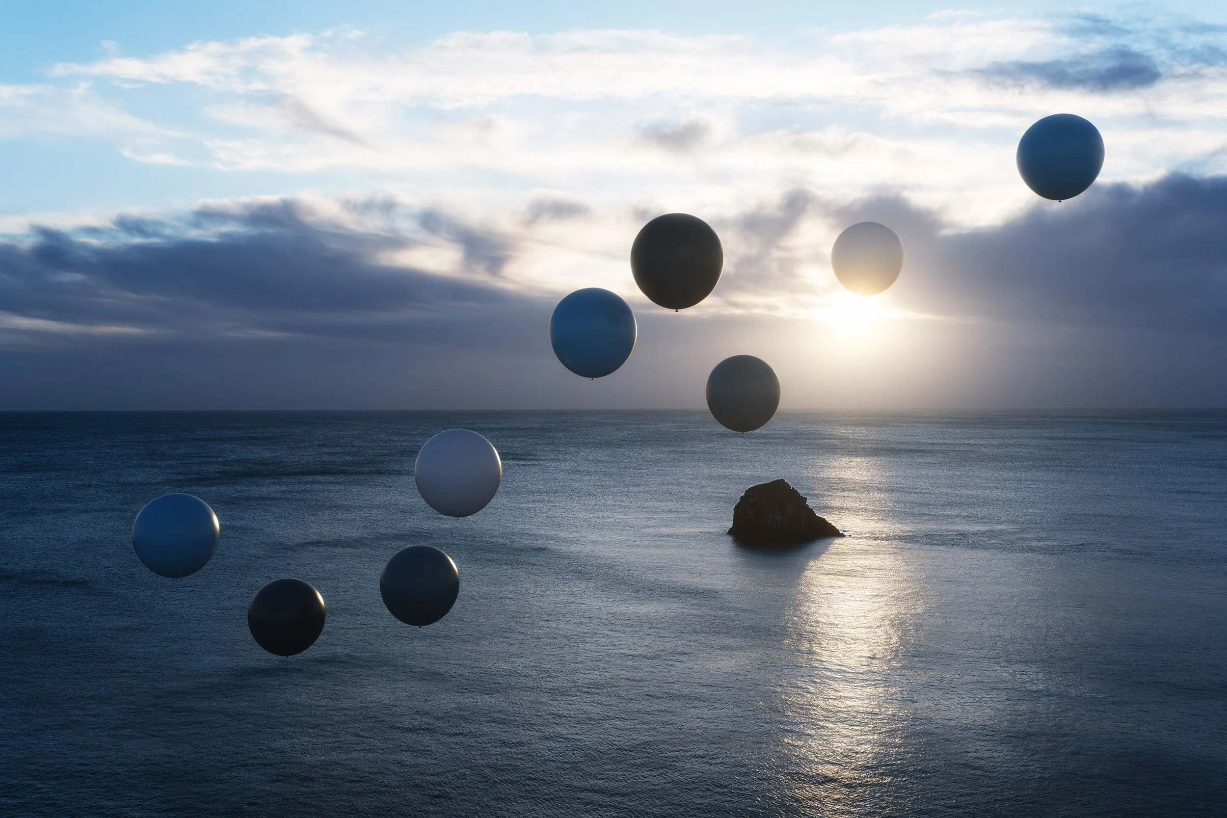Floating forms read like markers in space - minimal, slow, and intentionally weightless. Rather than disruption, the focus is atmosphere - peaceful distance, softened scale, and a calm that lingers as the light rises.