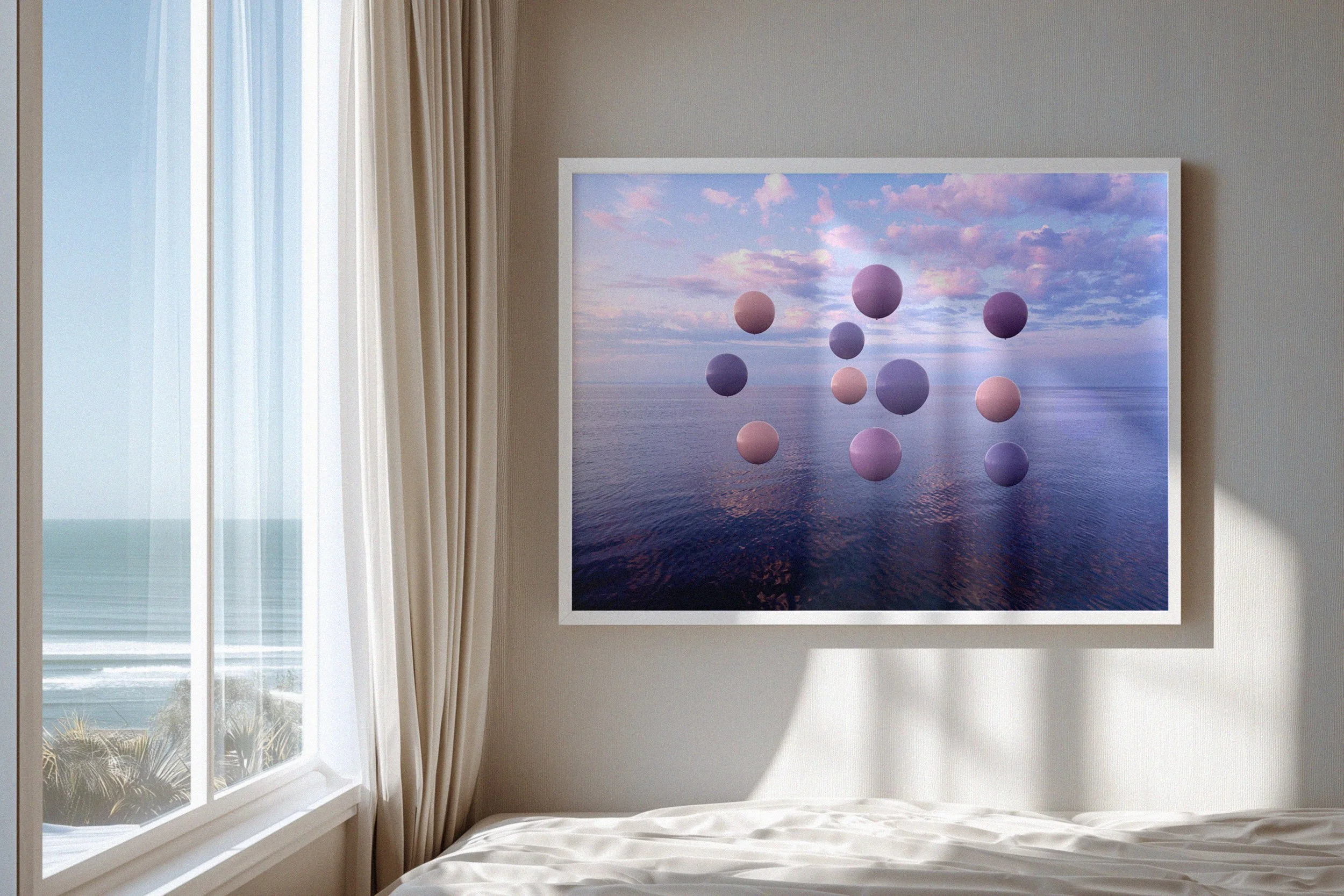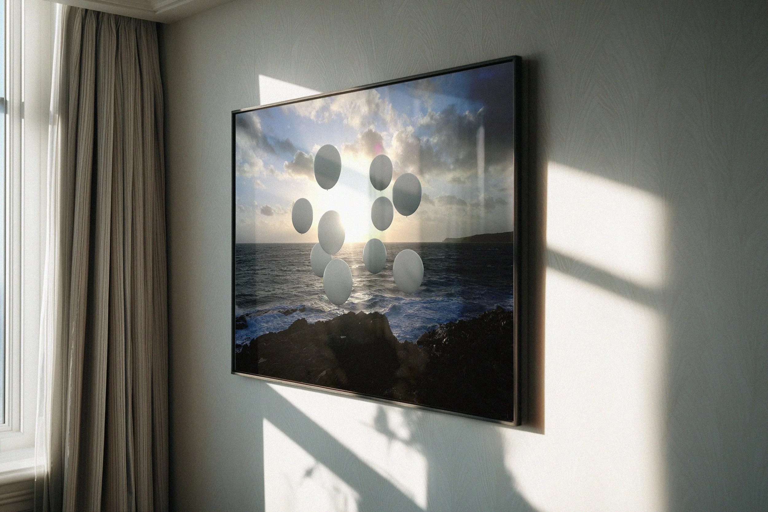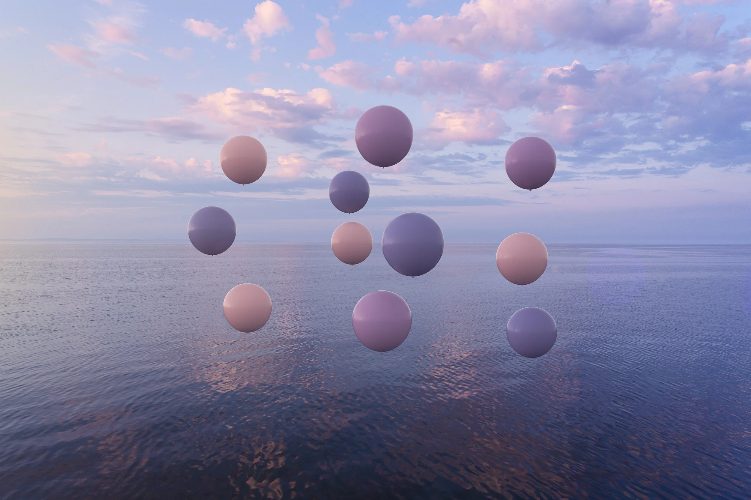 Floating forms read like markers in space - minimal, slow, and intentionally weightless. Rather than disruption, the focus is atmosphere - peaceful distance, softened scale, and a calm that lingers as the light rises.
